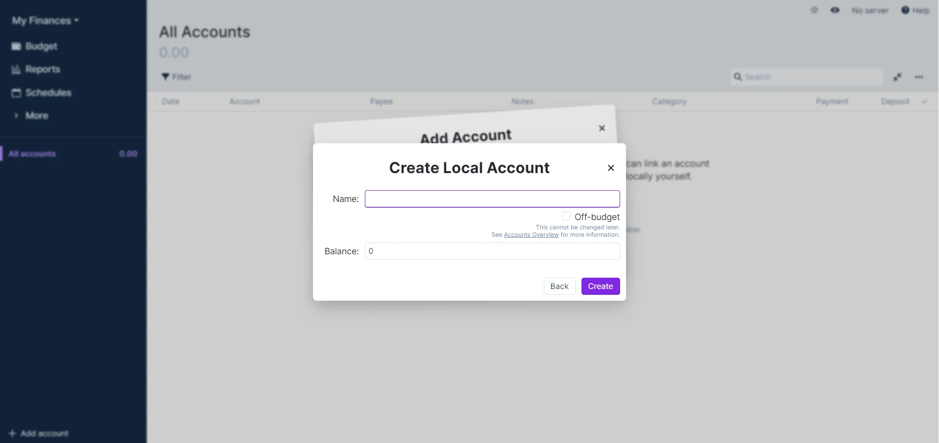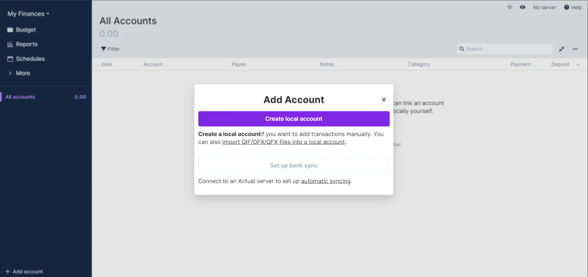 • Create a Local Account or Link to a supported bank syncing provider (See Connecting Your Bank)