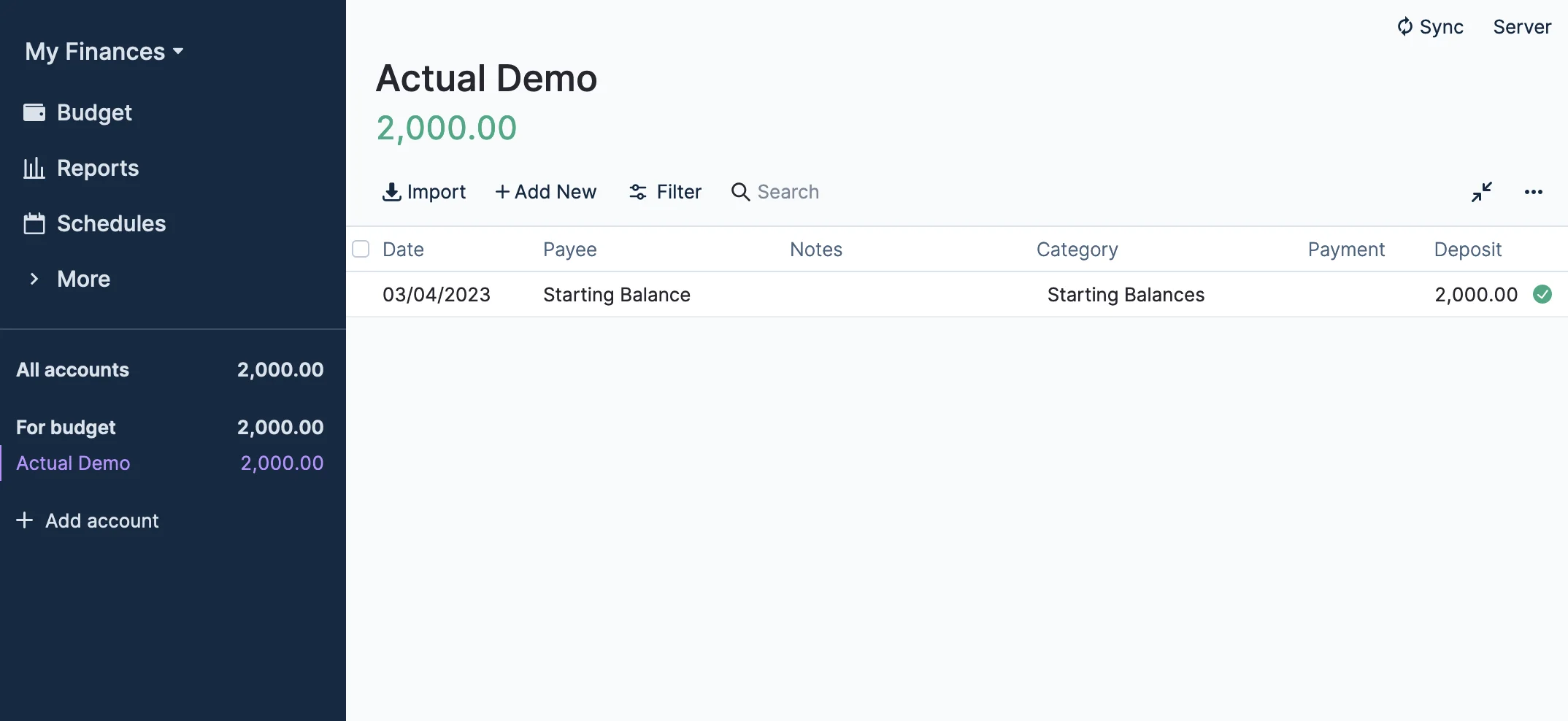 You can now see the account in the sidebar of Actual