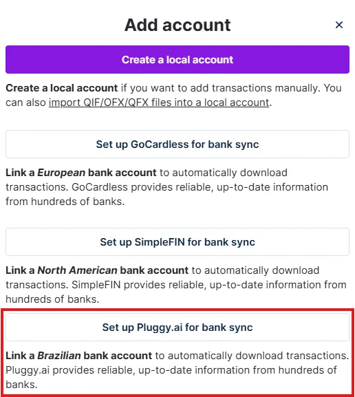 2. Select "Set-up Pluggy for bank-sync."